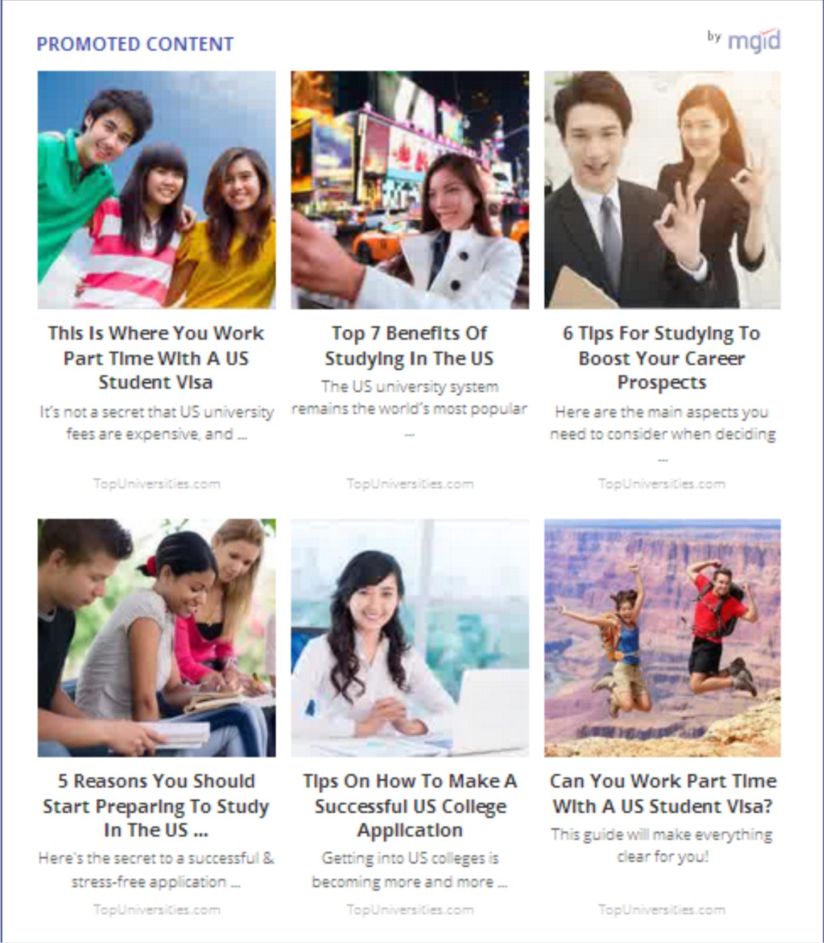 Salah satu cara untuk meningkatkan penghasilan dari MGID adalah buatlah Blog yang bertema tentang News, Galerry Foto, Video, Games, Comic, dan Travel karena Blog dalam kategori tersebut adalah yang disarankan oleh pihak MGID. Di bawah ini adalah salah satu contoh iklan dari MGID.