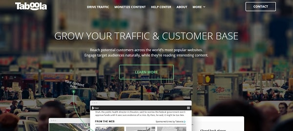 Taboola didirikan pada tahun 2007 dan dengan cepat menjadi sangat populer karena harga yang lebih tinggi dan kualitas layanan yang menawarkan untuk kedua penerbit dan pengiklan. Taboola adalah jaringan iklan lain yang berusaha lalu lintas tinggi dari situs-situs penerbit. Ini adalah jaringan iklan untuk penerbit besar. Ini menawarkan tarif yang tinggi dan kualitas iklan yang tidak hanya menghasilkan pendapatan yang tinggi tetapi juga meningkatkan pengalaman pengguna. Taboola memiliki persyaratan lalu lintas tinggi, sehingga, jika website Anda menerima jumlah lalu lintas yang tinggi maka Anda dapat mengajukan permohonan untuk bergabung dengan jaringan iklan ini.