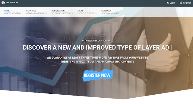 Adoverlay adalah jaringan iklan yang berinteraksi dengan pengunjung secara langsung melalui bentuk-bentuk umpan balik untuk meningkatkan pengalaman pengguna mereka. Tidak seperti format iklan tradisional pendekatan baru dan inovatif ini memaksimalkan hasil bagi pengiklan dan karenanya menghasilkan pendapatan yang lebih tinggi untuk penerbit.Dengan Adoverlay, Anda tidak perlu khawatir tentang ruang iklan, ukuran yang berbeda atau coding yang rumit. cukup Sederhana satu baris kode akan cukup untuk menghasilkan hasil yang lebih tinggi.Adoverlay hanya melayani iklan berkualitas tinggi berdasarkan kepentingan pengguna yang meningkatkan pengalaman pengguna dan tingkat konversi. Adoverlay menerima kedua situs dewasa dan konten non-dewasa tapi website Anda harus mematuhi persyaratan mereka.
