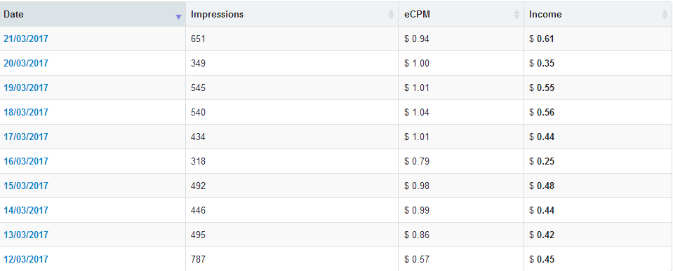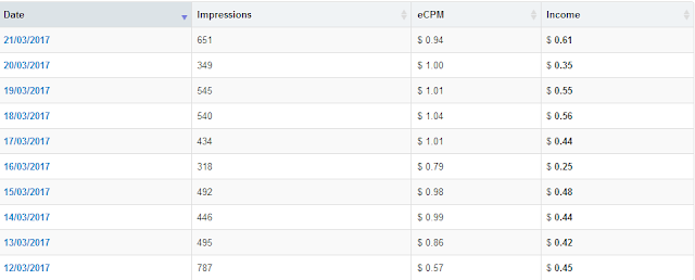 mendapati nilai eCPM lebih dari 1 USD. eCPM harian saya selalu saja
