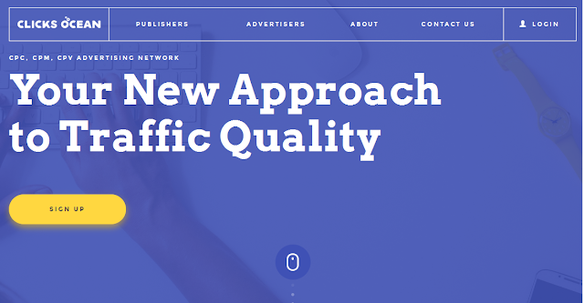 Clicks Ocean international adalah jaringan periklanan PPC dan CPM yang fokus pada menjual dan membeli seluruh lalu lintas dunia melalui XML feed . mereka menghubungkan penerbit dengan pengiklan untuk meningkatkan pendapatan dan ROI pengiklan.Untuk Pengiklan Clicks Ocean menawarkan lalu lintas yang berasal dari penerbit langsung kami yang memiliki sumber lalu lintas yang berbeda seperti IAS / Forensiq disaring, RON, PV / TOS, POP, Search, Video dan lain-lain.