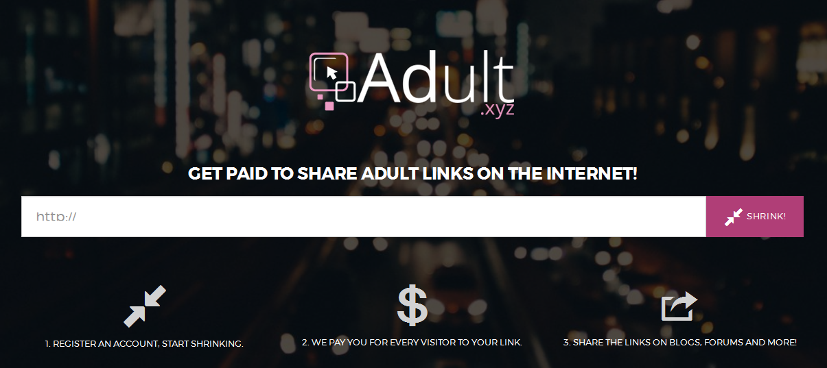 Adult.xyz adalah shortener URL berbayar premium . Ini terutama diluncurkan bagi mereka yang ingin menguangkan konten konten dewasa mereka. Padahal, ini adalah shortener URL baru tapi tetap saja saya mengatakan itu shortener URL premium, Kenapa? Alasan sederhana dibalik adalah, diluncurkan oleh Adf.ly , yang merupakan salah satu pelembab URL berbayar yang paling andal dan premium.Jika Anda pernah menggunakan shorteners URL berbayar maka Anda pasti pernah mendengar tentang Adf.ly. Dan, tidak perlu mengatakannya, ini hanya memungkinkan untuk konten konten non dewasa saja . Jadi, untuk mengatasi hal ini dan karena permintaan pengguna yang tinggi, Adf.ly akhirnya meluncurkan shortening URL khusus bagi pengguna untuk memonetisasi tautan konten dewasa mereka.