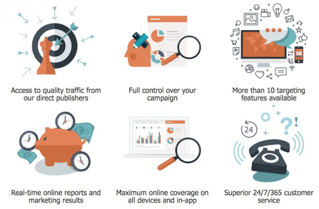 Setelah disiapkan dengan akun AdsRevenue, semua pengiklan akan memiliki akses ke lalu lintas berkualitas, beberapa fitur penargetan (termasuk penargetan geo, penargetan perangkat dan penargetan bahasa), dan laporan online real-time untuk memastikan Anda berada di jalur yang benar.