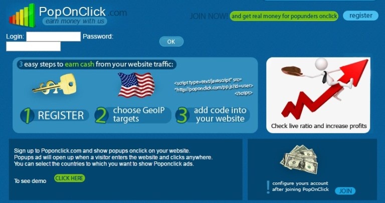 Poponclick is an online popup advertising platform or network that