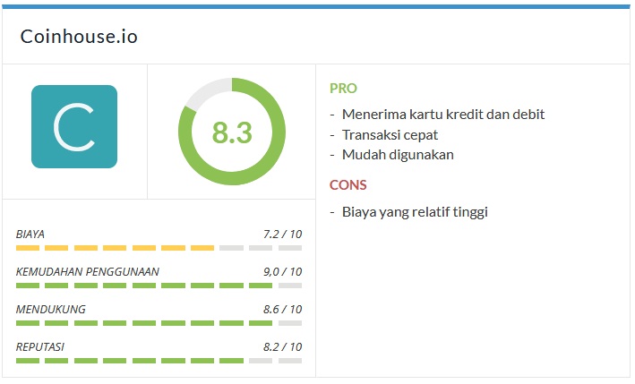 Semua dalam semua Coinhouse.io adalah broker Bitcoin yang solid, terutama bagi orang-orang yang tinggal di Eropa yang ingin membeli Bitcoin dengan kartu kredit mereka.